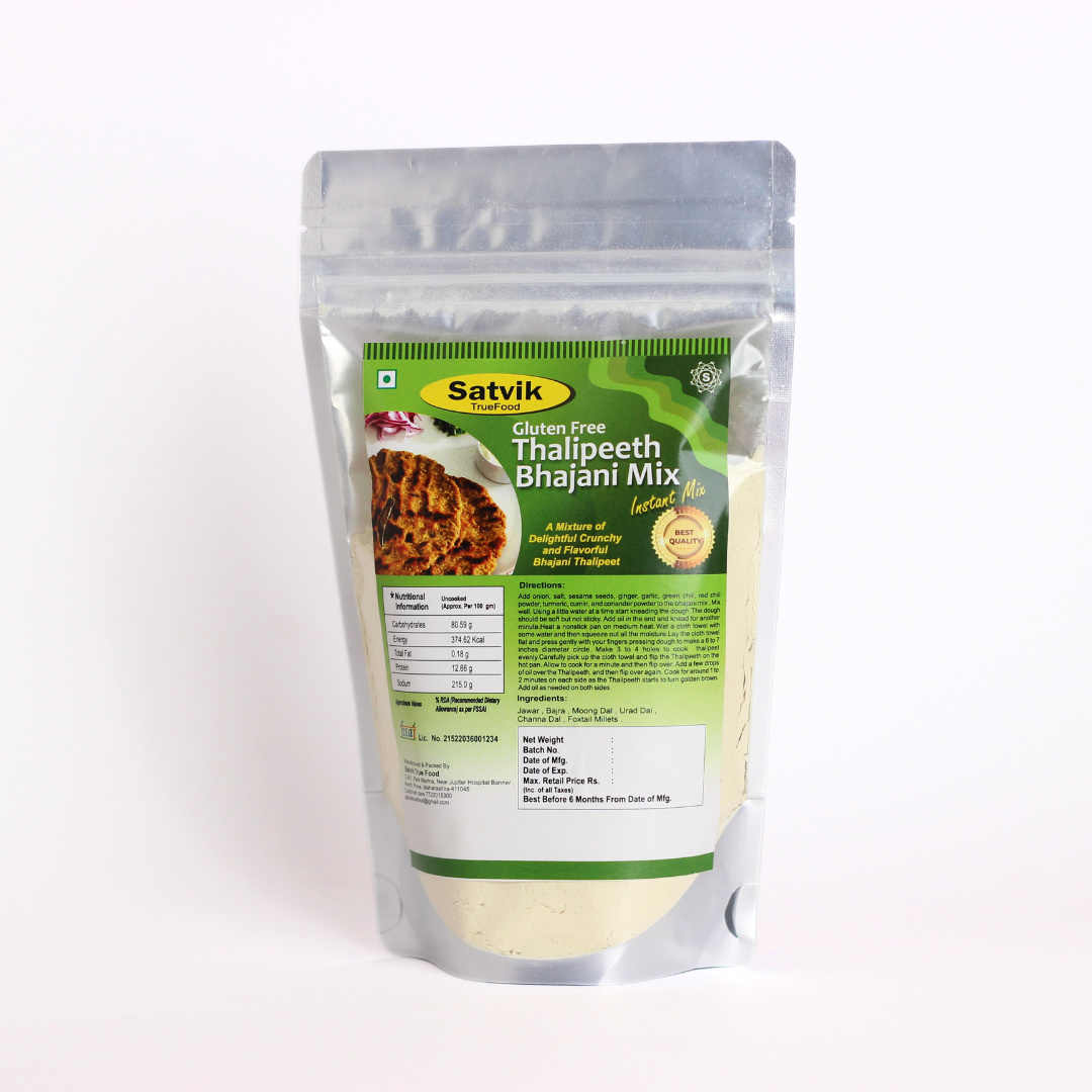 Our Thalipeeth Bhajani Mix is the signature product of Satvik True Food, crafted to make traditional eating simple and joyful. Naturally gluten-free and packed with nutrition, it makes for a light, wholesome breakfast that keeps you energized through the day. Quick and easy to prepare, this mix helps you build the habit of enjoying authentic, homemade flavors instead of relying on unhealthy instant foods. With every bite, you preserve not just your health but also the rich tradition of Indian home cooking.